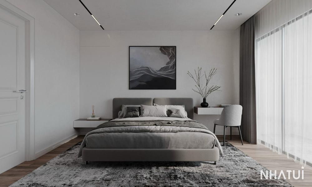 Phòng ngủ tại dự án này được thiết kế theo xu hướng tối giản, loại bỏ những chi tiết rườm rà để tập trung vào chất lượng giấc ngủ.