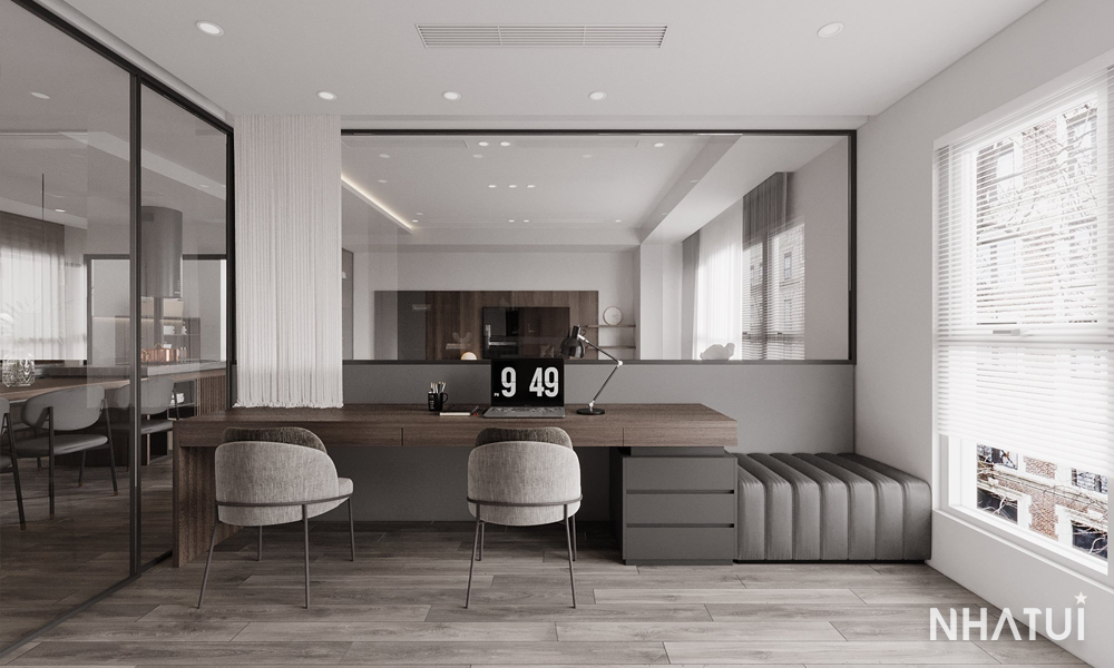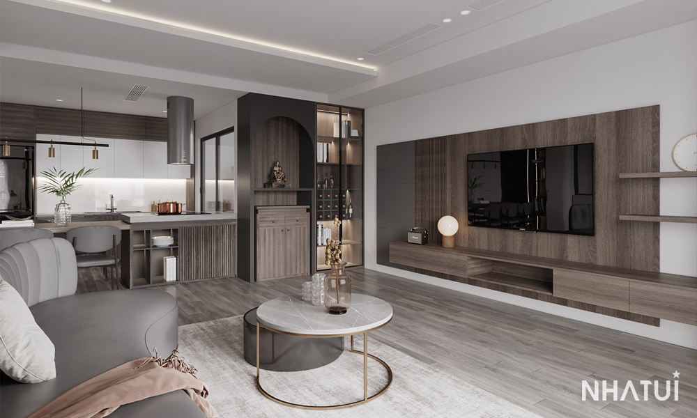 Tone màu xám – nâu trầm làm chủ đạo, tạo nên sự sang trọng, nhẹ nhàng