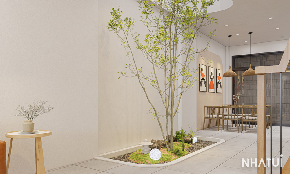 Kết hợp tiểu cảnh xanh, sỏi trang trí